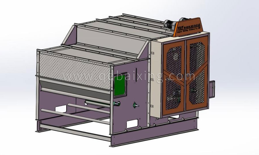上儲棉箱兩側板為網眼板,目的是排風,但是纖維中的灰塵也被直接排出,影響車間空氣質量;雖然網眼板的孔很小,但也會有小短纖維從孔中飛出,直接排到車間